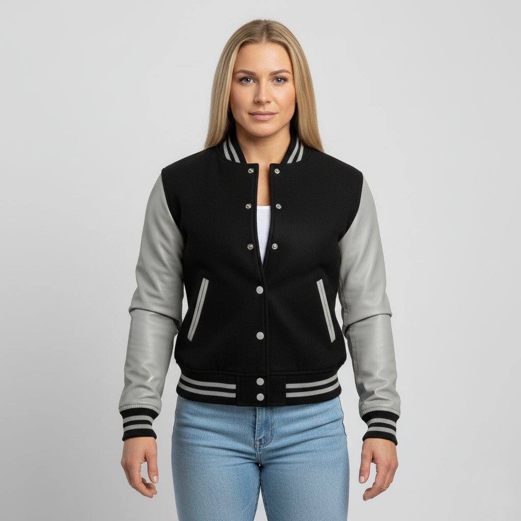 H5: Premium Black and Gray College Varsity Jacket for Women