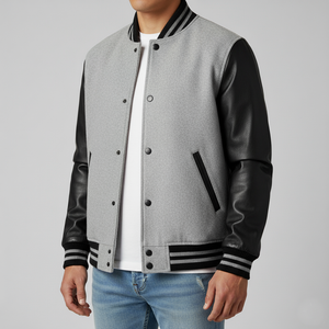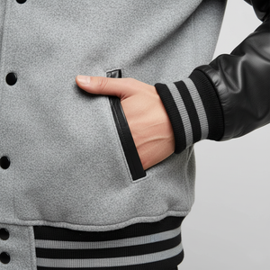 Upgrade your varsity look with our grey and black varsity letterman jacket with leather sleeves. The sleek grey wool body paired with classic black leather sleeves offers a timeless and versatile style. Designed for comfort, durability, and everyday wear, this jacket is perfect for school events, casual outings, or weekend streetwear, giving you a confident, sporty edge.