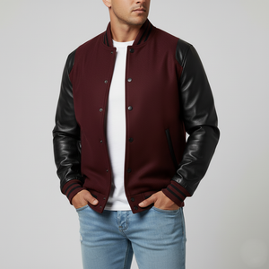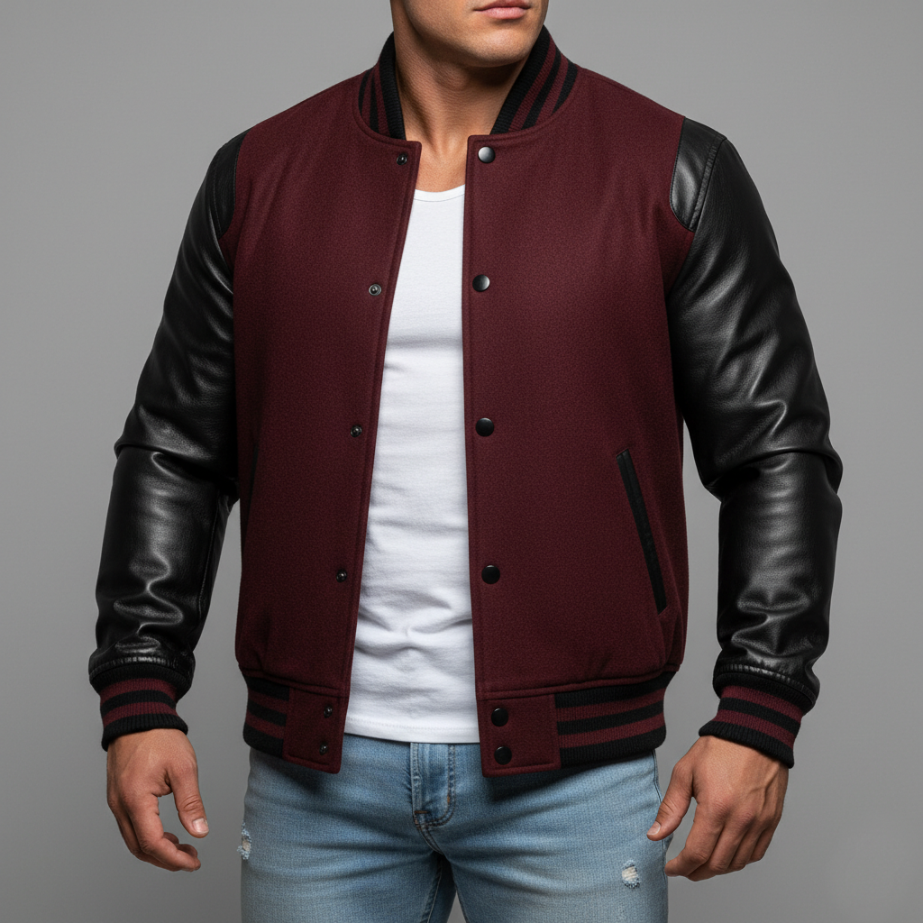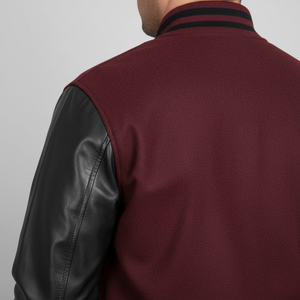 Not sure how to choose a quality maroon and black letterman jacket? This jacket features a structured wool body with durable leather sleeves, delivering warmth, comfort, and long-lasting wear.