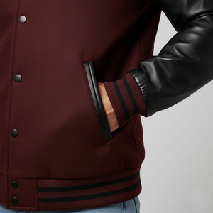 Maroon and Black Varsity Letterman Jacket with Leather Sleeves