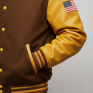 Proper care ensures your brown and yellow varsity jacket stays in shape. Hang to air dry, spot clean when needed, and avoid harsh detergents to preserve wool, leather sleeves, and chenille patches.