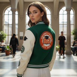 Crafted with premium materials and attention to detail, this women's crop letterman jacket is designed for those who want to stand out. The cropped silhouette offers a flattering fit while maintaining the iconic varsity aesthetic that never goes out of style.