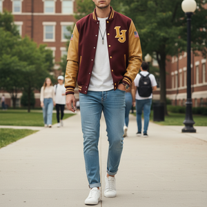 Style your burgundy and gold varsity jacket for everyday campus life or street fashion. Pair it with jeans, casual dresses, or hoodies for a versatile look, and complete your outfit with sneakers or boots. The bold color combination and retro-inspired chenille patches create a timeless varsity aesthetic while keeping your look contemporary and fashion-forward.