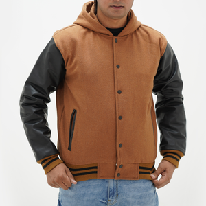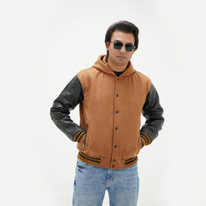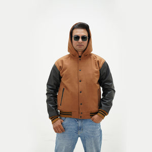 All American Varsity Jacket With Hoodie Wool Body And Leather Sleeves