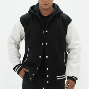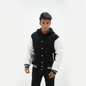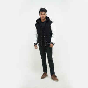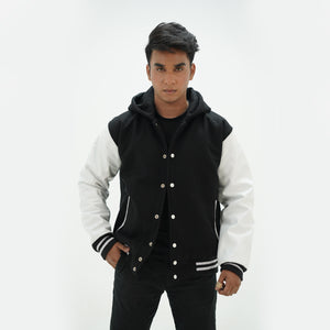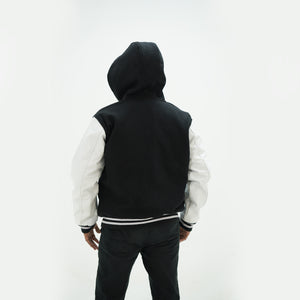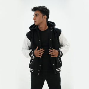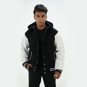 Men's Letterman Jacket With Hoodie Black And White Varsity Jacket