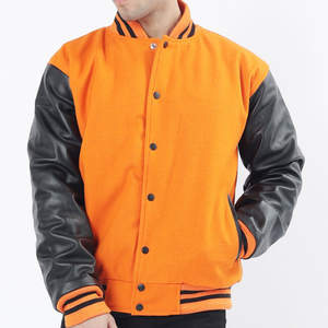 Men's Orange Wool Body And Black Leather Sleeves Varsity Jacket