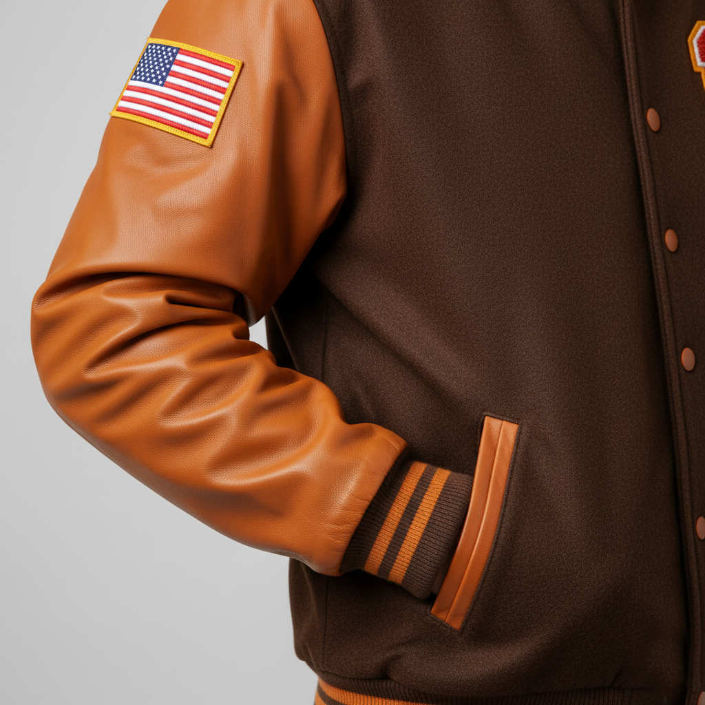 Custom Brown and Orange Varsity Letterman Jacket with Patches