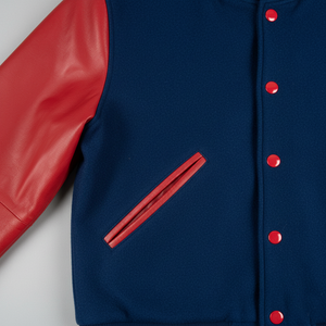 Stay comfortable and stylish with our Blue and Red Fleece Varsity Jacket for Everyday Streetwear. The soft fleece lining ensures warmth without bulk, making it ideal for daily wear, weekend outings, or casual campus events. Lightweight yet durable, it’s a versatile jacket that effortlessly transitions from school activities to city streets.