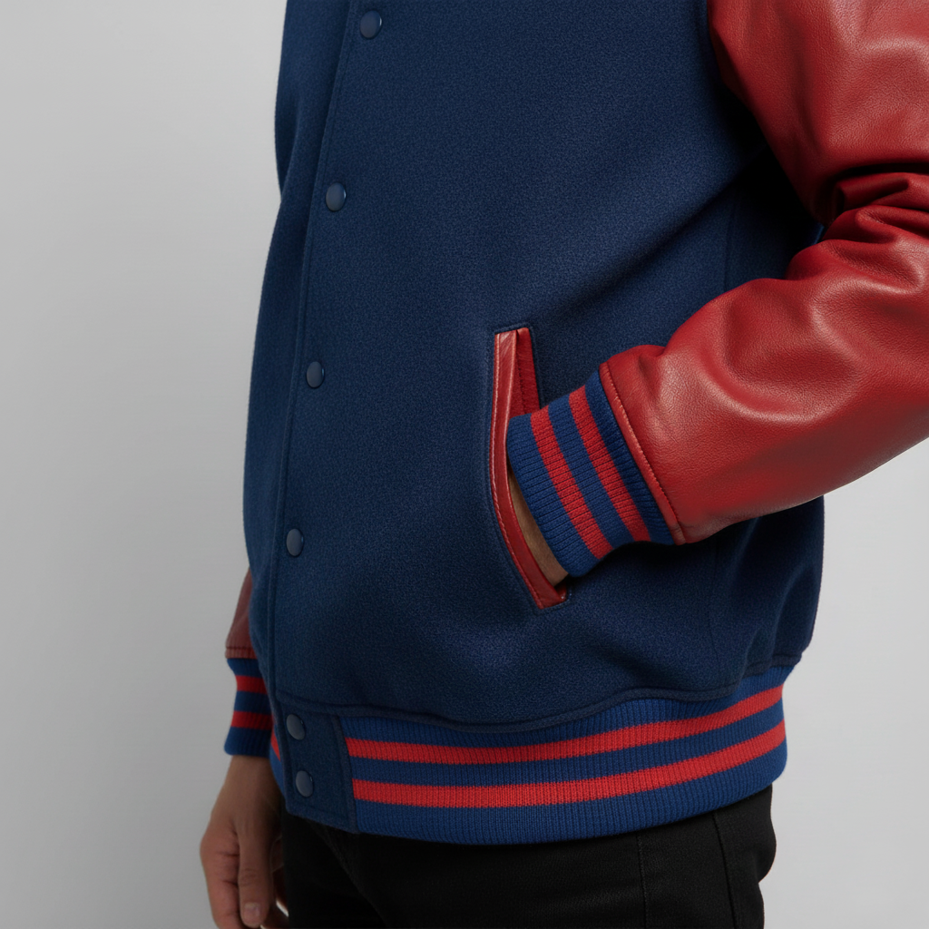 Comfortable Blue and Red Varsity Jacket for All-Day Wear