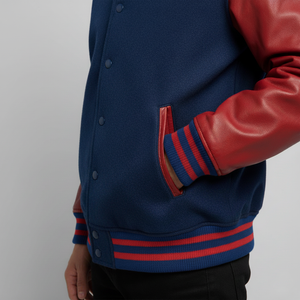 Blue and Red Varsity Jacket with Custom Embroidery Options