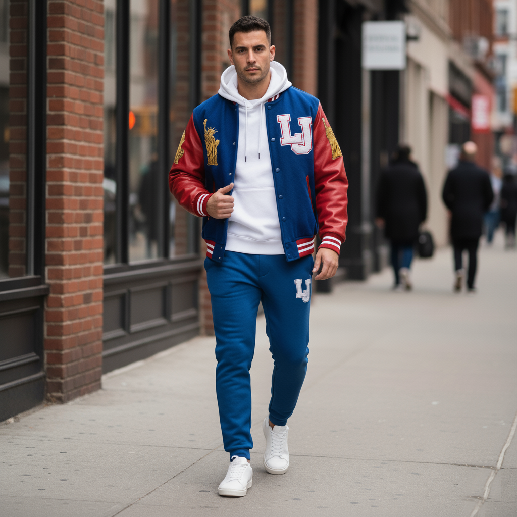 H2: Men’s Blue and Red Classic College Letterman Jacket Style