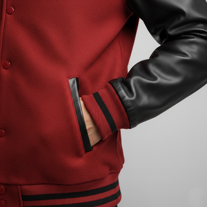 Personalize your jacket with a Custom Red Black Letterman Jacket with Embroidered Logo. Add your initials, school emblem, or favorite patches to create a one-of-a-kind look that’s uniquely yours. Customization ensures your jacket becomes more than apparel—it becomes a statement of identity and pride, ideal for gifts, team spirit, or commemorating special events.
