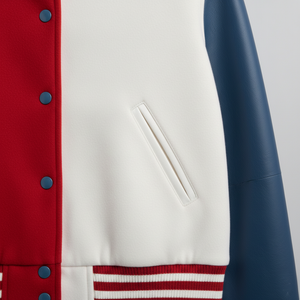 Absolutely. This red and white varsity jacket for college students and fans combines team spirit with fashion-forward style for campus life and game day events.