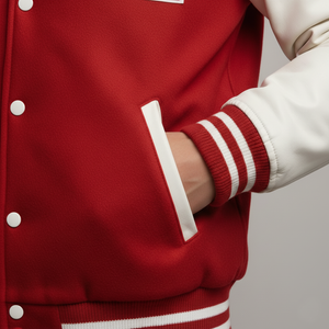 Make a bold statement on campus, at school events, or on game day with our Red Wool Body and White Leather Sleeves Varsity Jacket. Designed for men and women who love classic varsity style, this jacket combines vibrant red wool with premium white leather sleeves, delivering authentic collegiate charm and street-ready fashion. Perfect for cheering your team, attending campus events, or casual everyday wear, it balances style, warmth, and comfort.