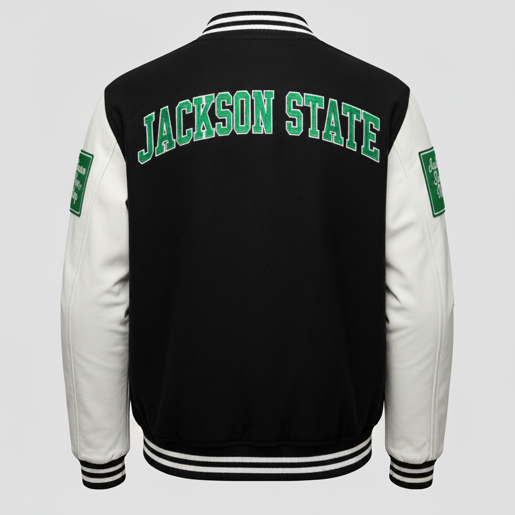 Make it uniquely yours! Custom Jackson State letterman jacket personalization allows initials, graduation years, or favorite numbers, helping you avoid personalization mistakes and ensuring a one-of-a-kind varsity jacket.