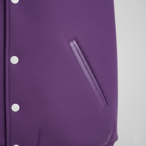 Show your K-State pride with this vintage varsity jacket, featuring a wool body, genuine leather sleeves, and bold purple-and-white Wildcats embroidery. Perfect for students, alumni, and fans, this jacket balances classic varsity tradition with modern comfort—ideal for game days, tailgates, campus events, or casual streetwear.