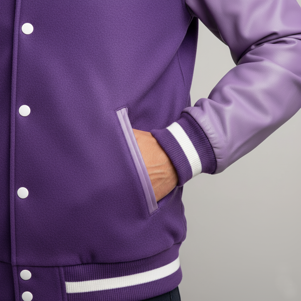 Crafted from a wool body and genuine leather sleeves, this jacket delivers warmth, comfort, and long-lasting durability. Our material guide helps fans understand care instructions and maintain the jacket’s vibrant colors and classic varsity structure season after season.