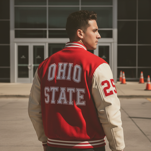 Keep your jacket looking sharp with Ohio State varsity jacket care and maintenance tips. Spot clean or dry clean to preserve the wool, leather, and embroidery, ensuring your jacket stays game-day ready and streetwear-ready.