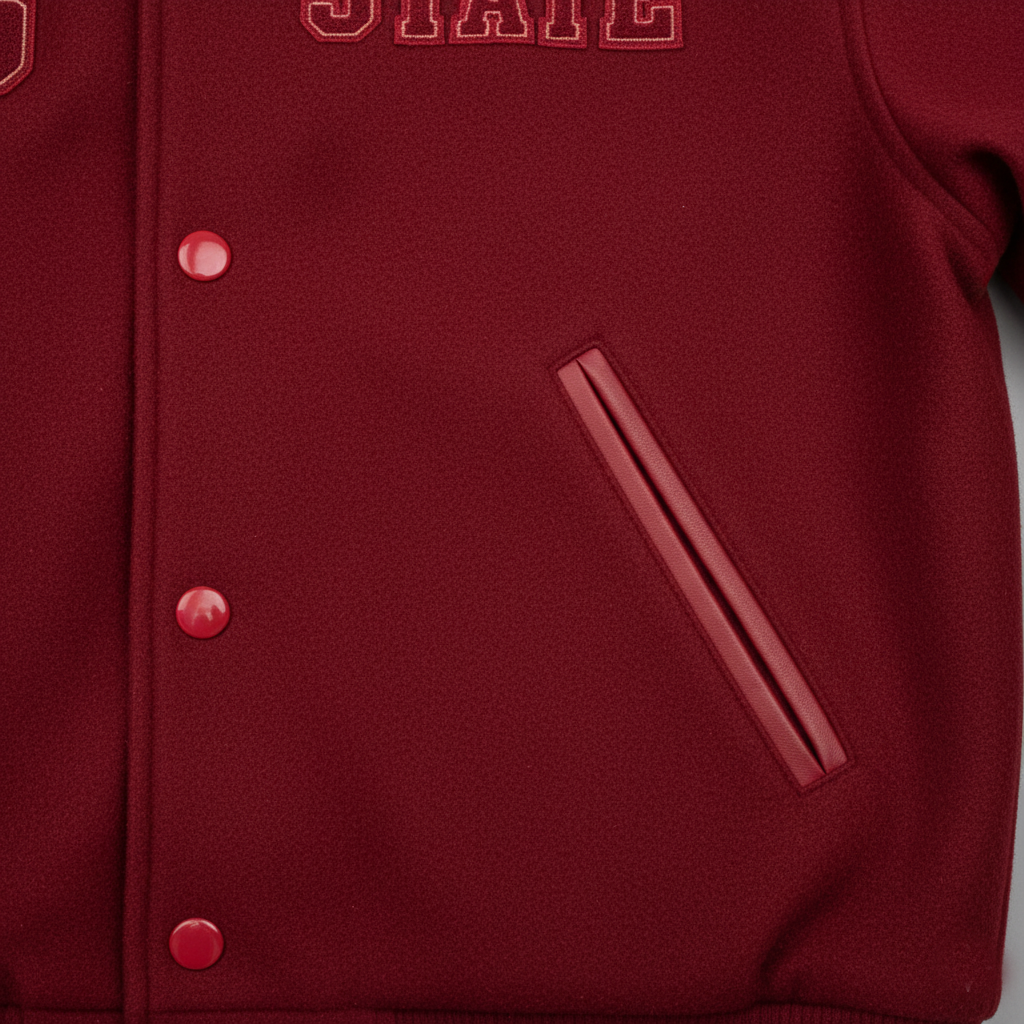 Crafted from high-quality wool and genuine leather sleeves, this jacket delivers durability, warmth, and style. It addresses the question what are the best materials for SC State varsity jackets and ensures a long-lasting wardrobe staple.