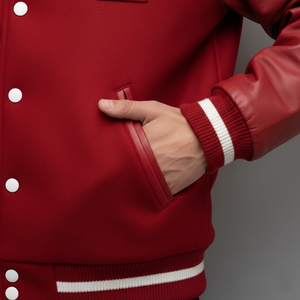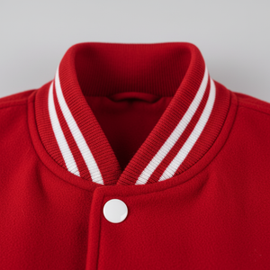 Rib-knit cuffs, collar, and waistband provide a snug fit, while the snap closure makes it easy to wear. Small details like these make a huge difference for comfort and style — common pain points for varsity jacket buyers.