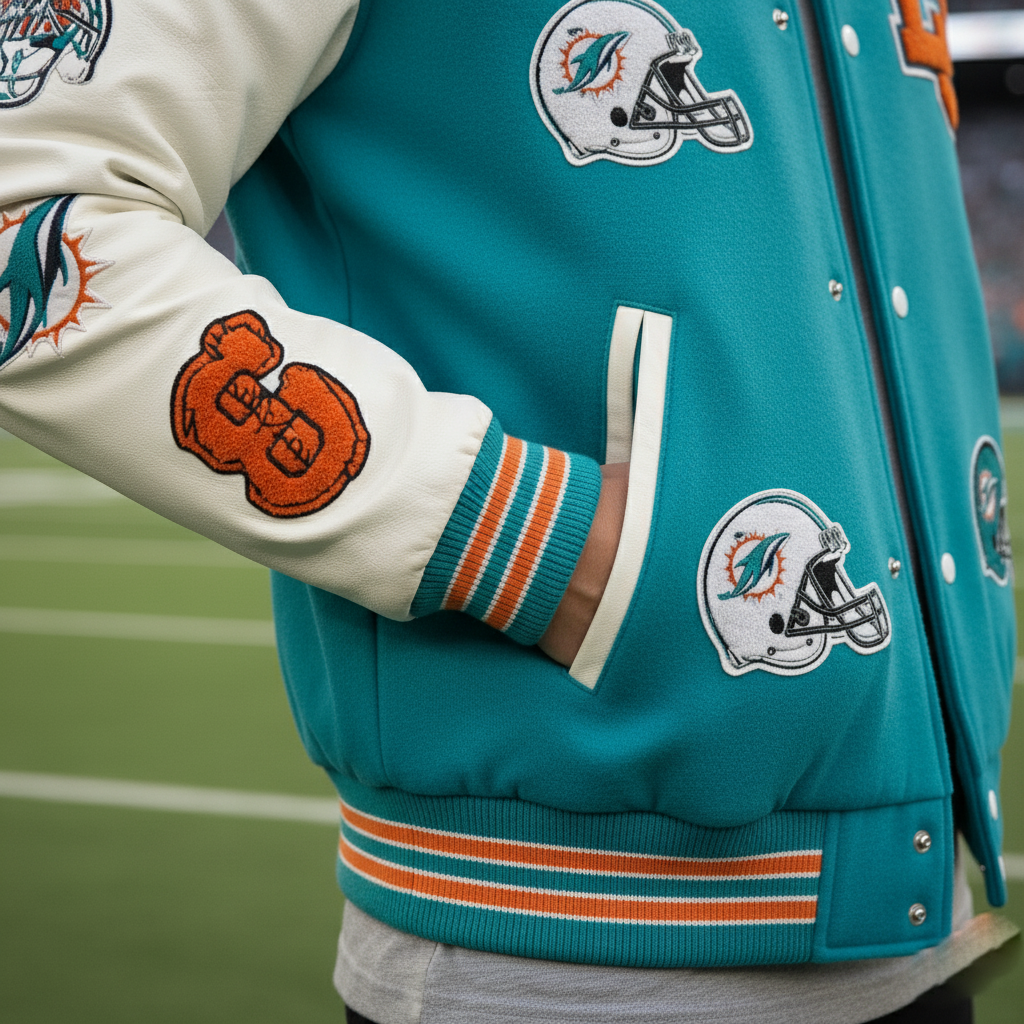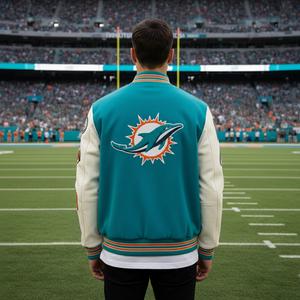 Knowing where to buy official Miami Dolphins varsity jackets online ensures you receive quality, durability, and authentic NFL varsity style.