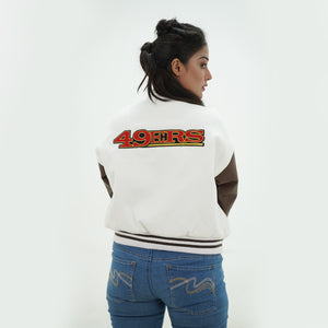 Women 49ers Letterman Jacket White Wool Body And Chocolate Leather Arms