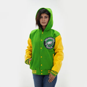 Women's Philadelphia Eagles Letterman Hoodie Jacket Wool Varsity Jacket