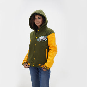 Women's Philadelphia Eagles Varsity Jacket Leather Arms And Wool Body