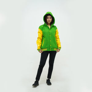 Kelly Green And Yellow Varsity Jacket Women's Letterman Jacket With Hood