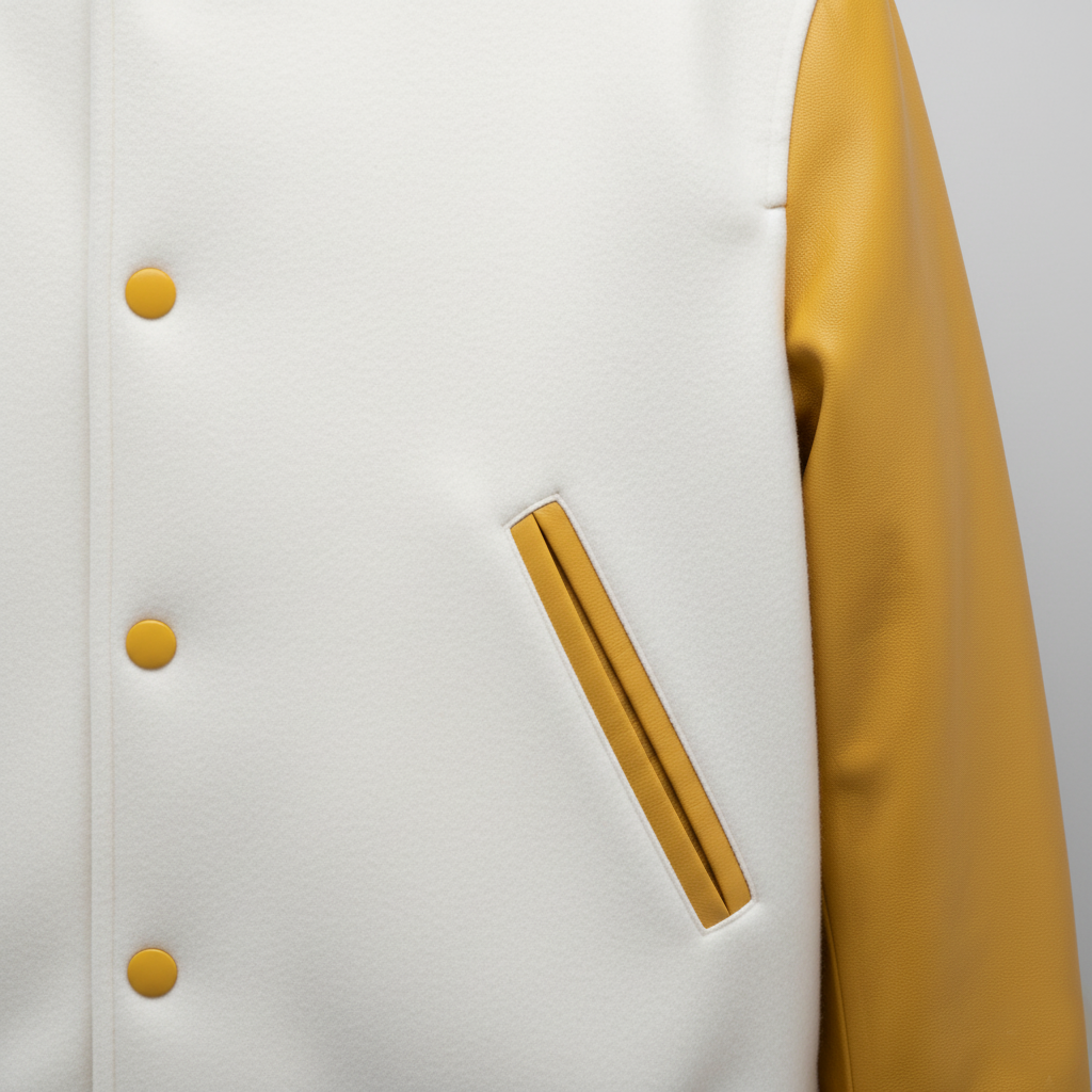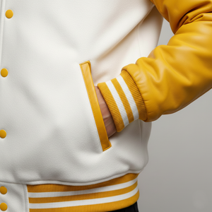 H4: Warm Yellow and White Varsity Jacket for Fall and Winter
