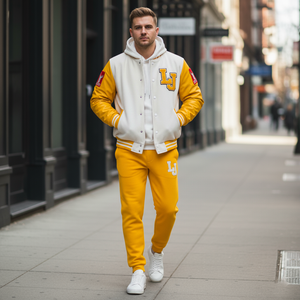 Our Lightweight Yellow and White Letterman Jacket for Everyday Streetwear is designed for comfort and casual wear. Soft lining, breathable materials, and a flexible fit make it perfect for daily campus wear, casual outings, or weekend adventures. Pair it with jeans, joggers, or sneakers for a versatile street-ready look.