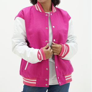 Pink Women's Baseball Letterman Jacket Wool Body Leather Sleeves