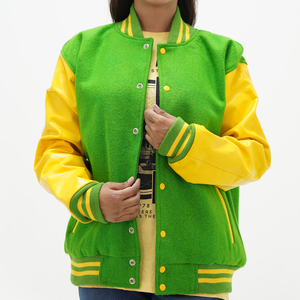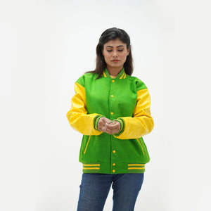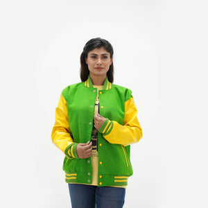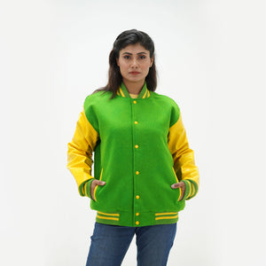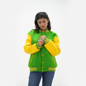 Women's Kelly Green Letterman Jacket Leather Arms And Wool Body Varsity Jacket